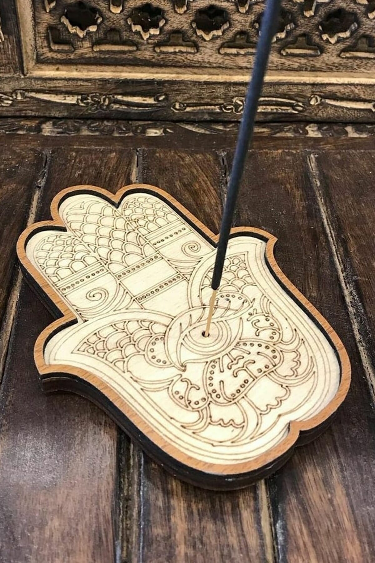 Hakel Home Şans Bereket Sembolü Fatma Ana Eli Tütsülük Şans bereket sembolü fatma ana eli tütsülük Tütsünüzü kolayca yakmanızı sağlarken dekoratif görünüm kazandırır. Yanan tütsü küllerinizin etrafa dağılmasını engeller. Ahşap malzemeden üretilmiştir. Ürün boyutları: 15x11,5x 1,5 cm ;