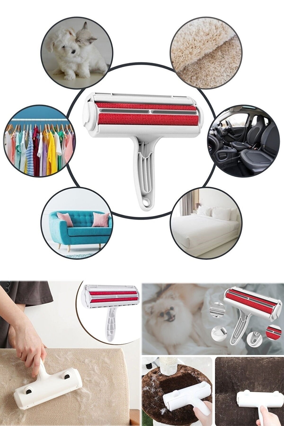 Tüy Toz Kıl Toplayıcı Temizleyici Hazneli Fırça Süpürge Halı Kapaklı Koltuk Döşeme